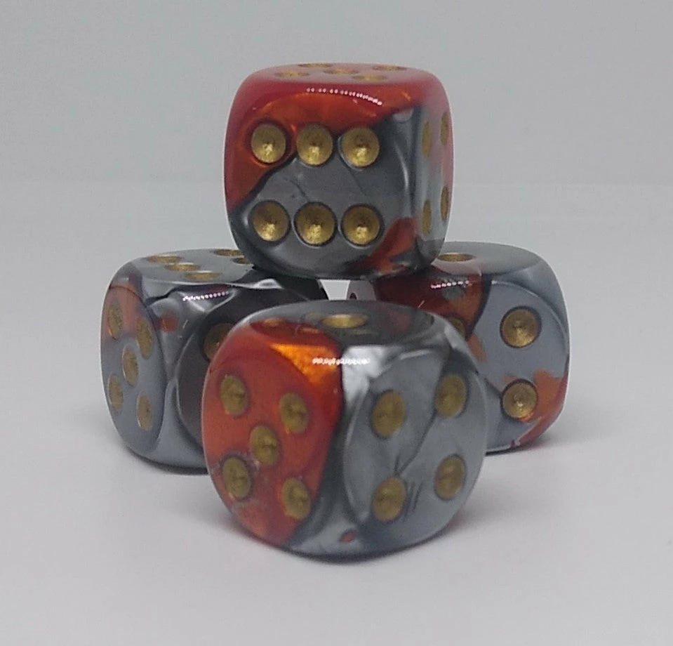 Accessories Chessex 26661 Gemini: Orange-Steel/Gold – 16mm D6 (12 Dice)