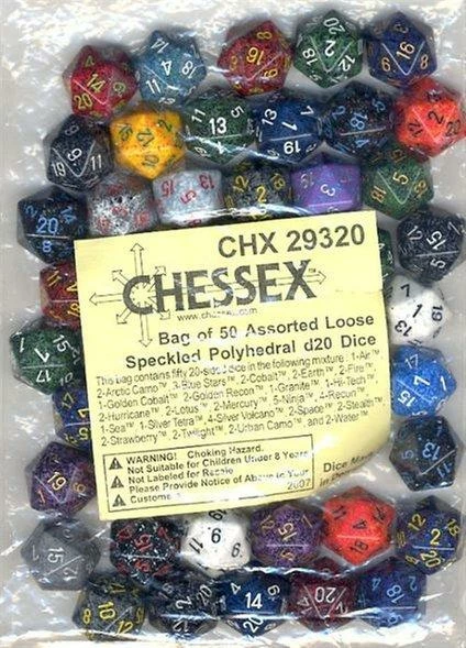 Accessories Chessex 29320 – Bag Of 50 Assorted Speckled 20-Sided Dice