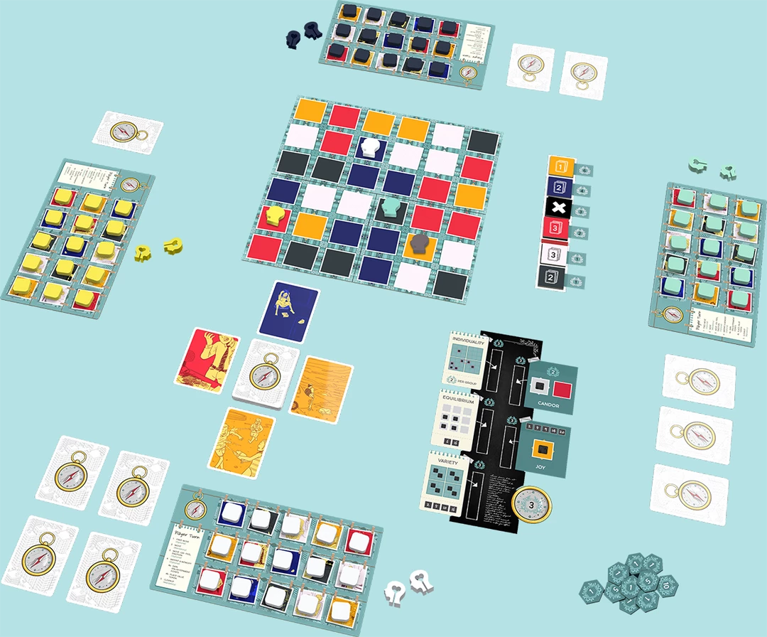 In Inner Compass, you play as one of four characters searching for meaning in their everyday lives. (Sound familiar?) Make the right life choices, experience the full spectrum of emotions, create meaningful memories, and — ultimately — find your own inner compass. The most enlightened player wins!