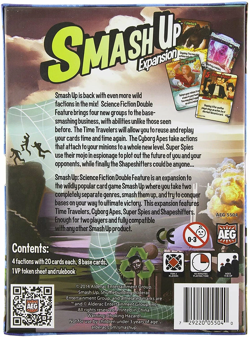 Smash Up is back with even more wild factions in the mix! Science Fiction Double Feature brings four new decks to the base-smashing business with abilities unlike those seen before!