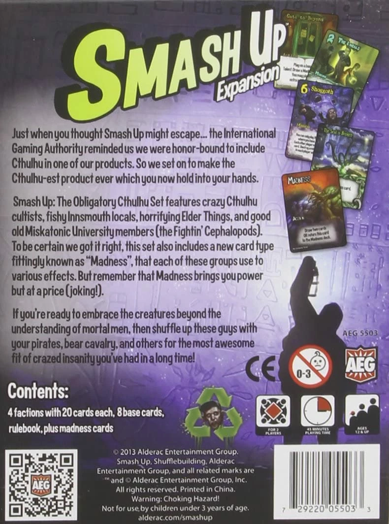 Just when you thought Smash Up might escape, the International Gaming Authority reminded us at AEG that we were honor-bound to include Cthulhu in one of our products, so we set on to make the most Cthulhu-est product ever.