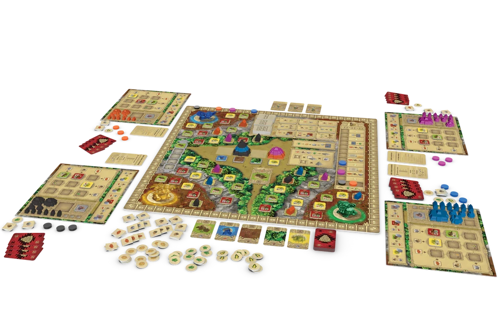 In a game of Zapotec, you build temples, cornfields and villages in the three valleys surrounding the capital to generate resources needed for building pyramids, making sacrifices to the gods, and performing rituals.