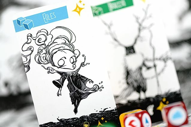 In Glow, you are an adventurer who builds their company by recruiting a new traveling companion each turn, trying to combine their powers as best as possible. You’ll roll the dice to activate the advantages that your companions bring you…or their disadvantages. Gather many slivers of light to dispel the darkness, restore the colors, travel the land to reach landmarks, and (yes) score points.