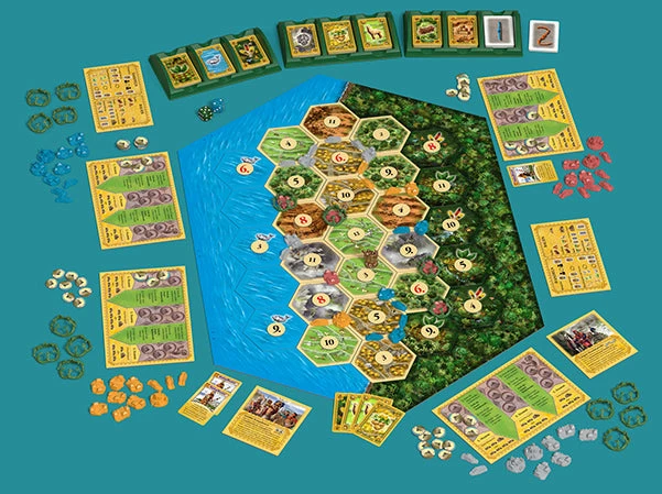 Settle, act, build — the basic Catan elements are all there in Catan Histories: Rise of the Inkas, but this game includes an innovative displacement mechanism that opens up new possibilities for players and confronts them with new game situations that will require tactical adjustments. Nature can reclaim settlements already built, allowing another player the chance to build their own settlement on a coveted site. Fish, cocoa, and feathers enrich the barter trade.