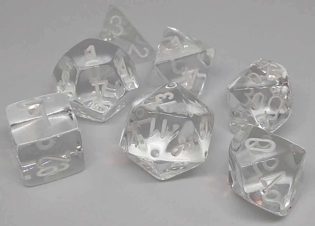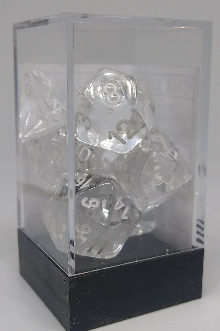 Chessex 23071 Translucent: Clear/White – Polyhedral (7 Dice) Accessories
