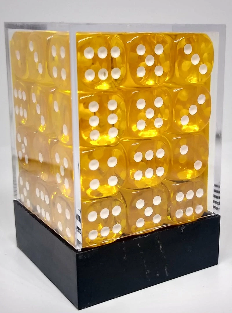 Chessex 23802 Translucent: Yellow/White – 12mm D6 (36 Dice) Accessories
