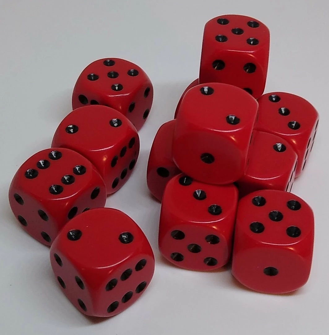 Chessex 25614 Opaque: Red/Black – 16mm D6 (12 Dice)