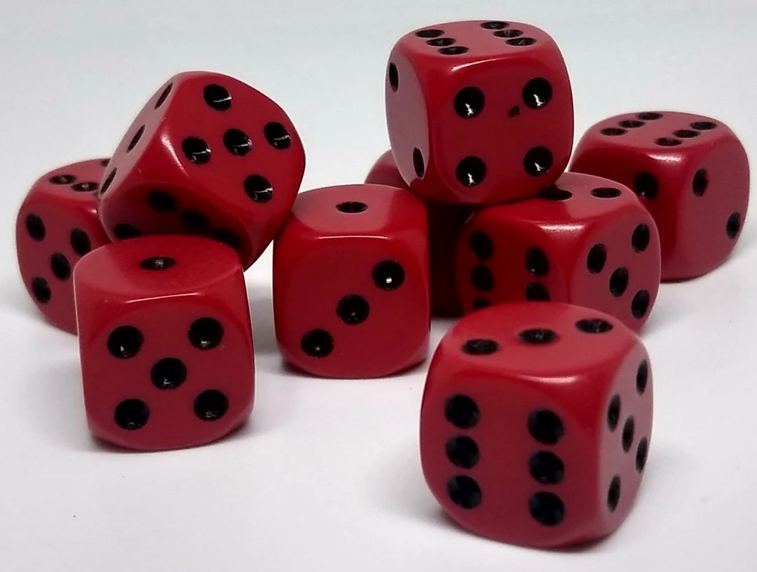 Chessex 25814 Opaque: Red/Black – 12mm D6 (36 Dice)