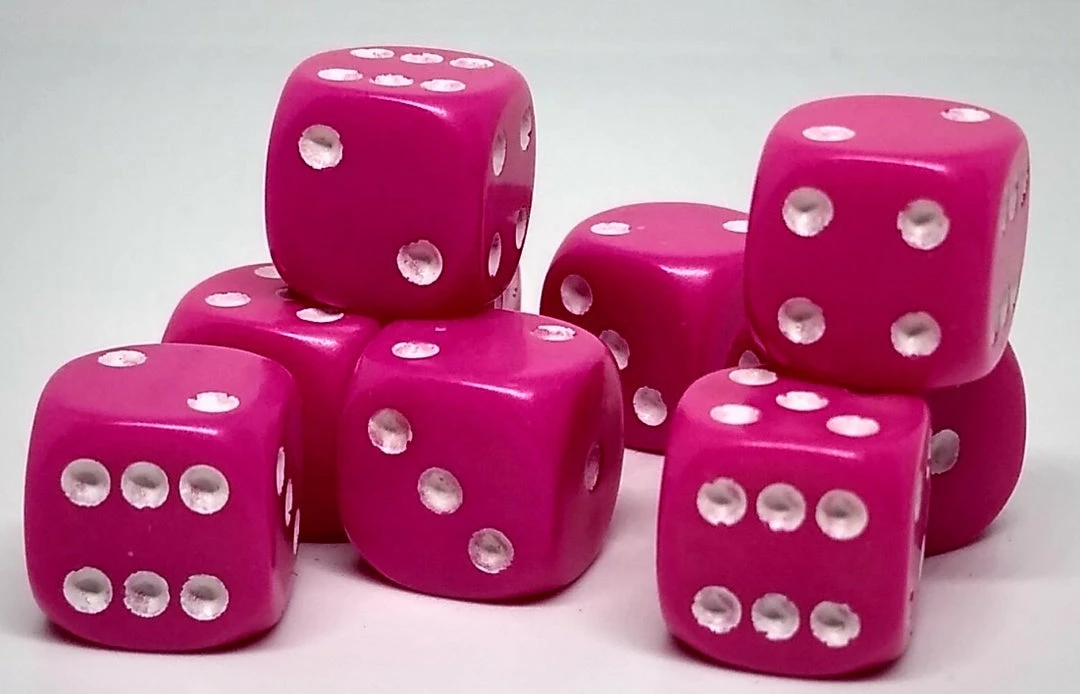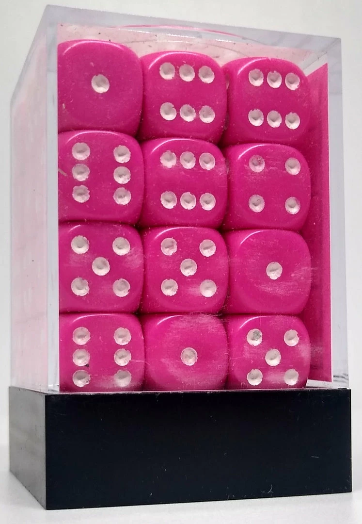 Chessex 25844 Opaque: Pink/White – 12mm D6 (36 Dice)