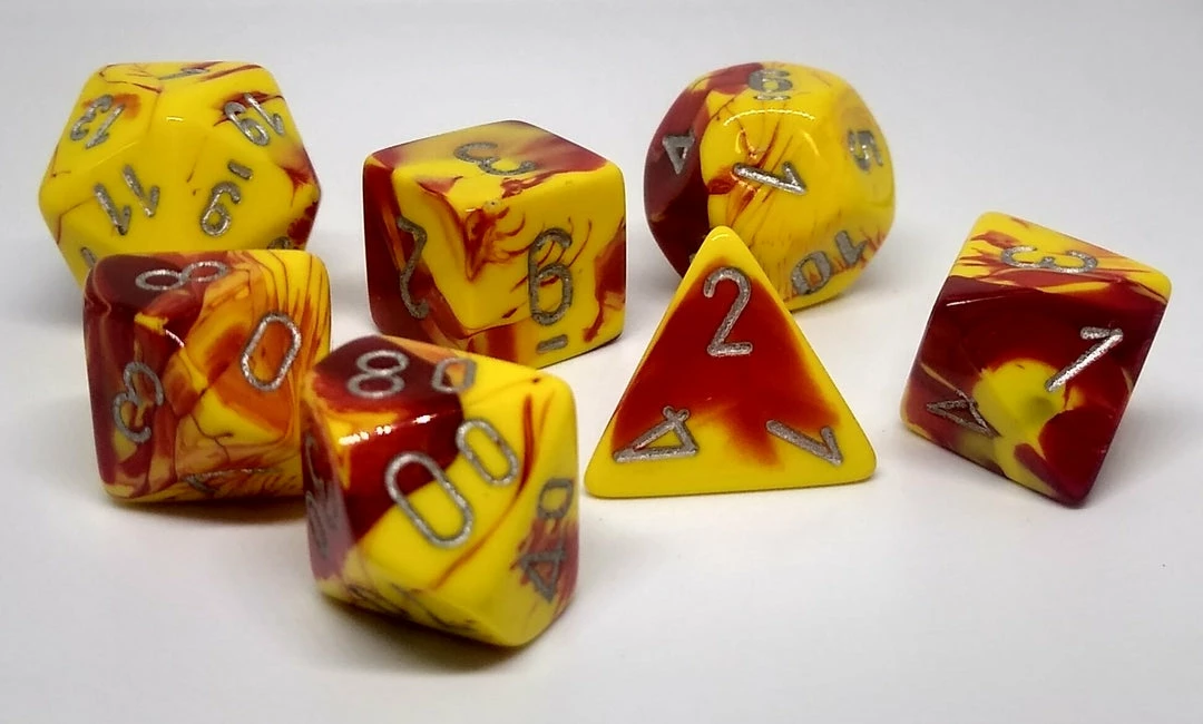 Chessex 26450 Gemini: Red-Yellow/Silver – Polyhedral (7 Dice) Accessories
