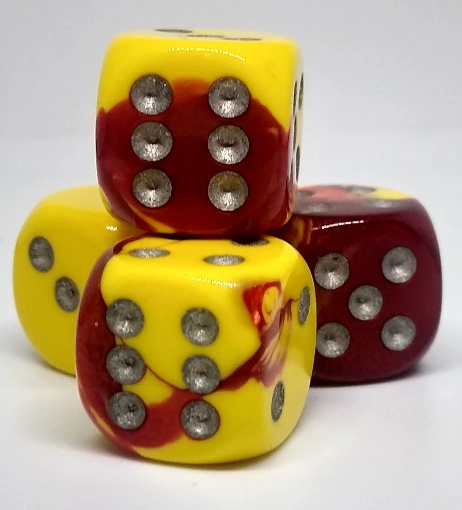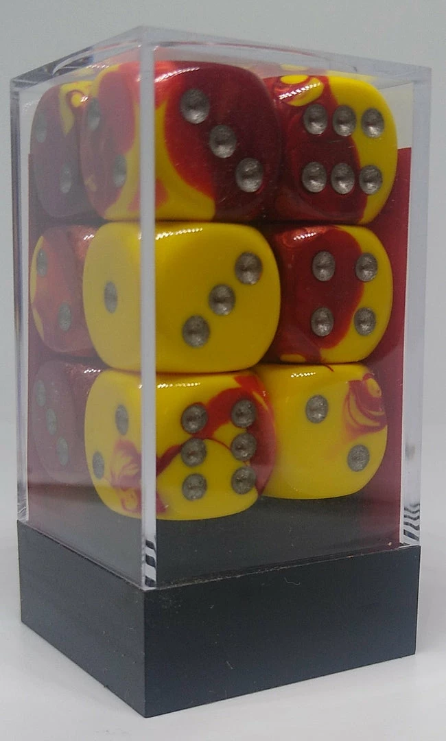 Chessex 26650 Gemini: Red-Yellow/Silver – 16mm D6 (12 Dice) Accessories