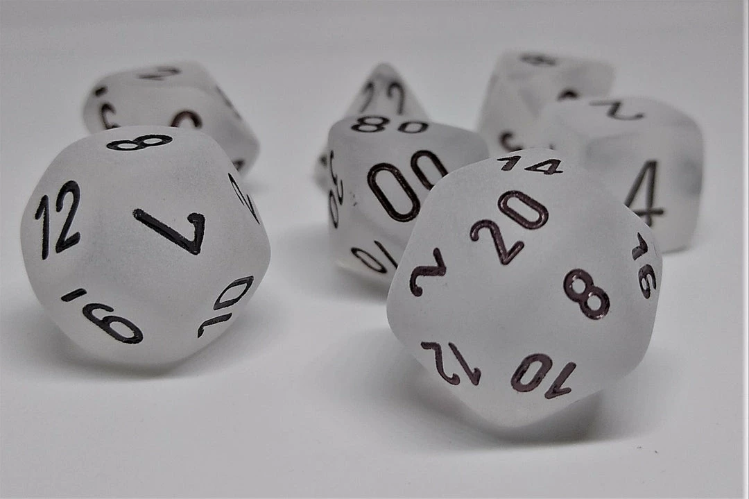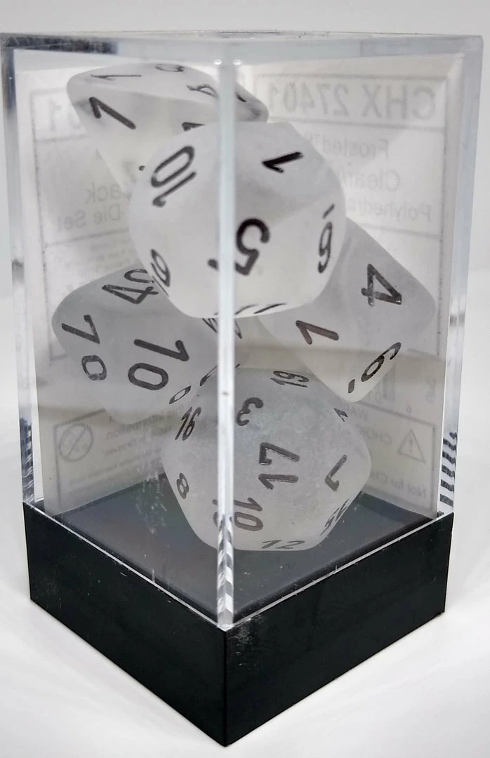 Chessex 27401 Frosted: Clear/Black – Polyhedral (7 Dice) Accessories