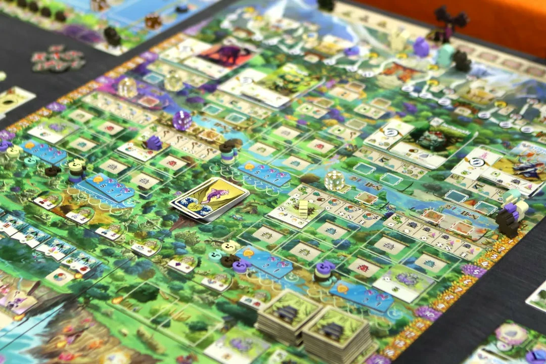 Players will have yōkai represented by the cards that make up their hand, which must be placed in the right places at the right times in order to obtain the maximum benefit from the abilities they offer. Furthermore, during the game players can earn more yōkai cards for their deck, thereby increasing their playing options and achieving a higher score. Each player also has three yōkai guardians (in the form of dice) that they can send to the large regions of the forest on the main board in order to obtain all kinds of new options that they can play during the game. These options can be structures they build in certain areas of the forest, soul crystals that generate resources when certain actions are carried out, and many others as well. The players also have the chance to help the mitamas, lost souls in search of redemption by using the chinkon fireflies.