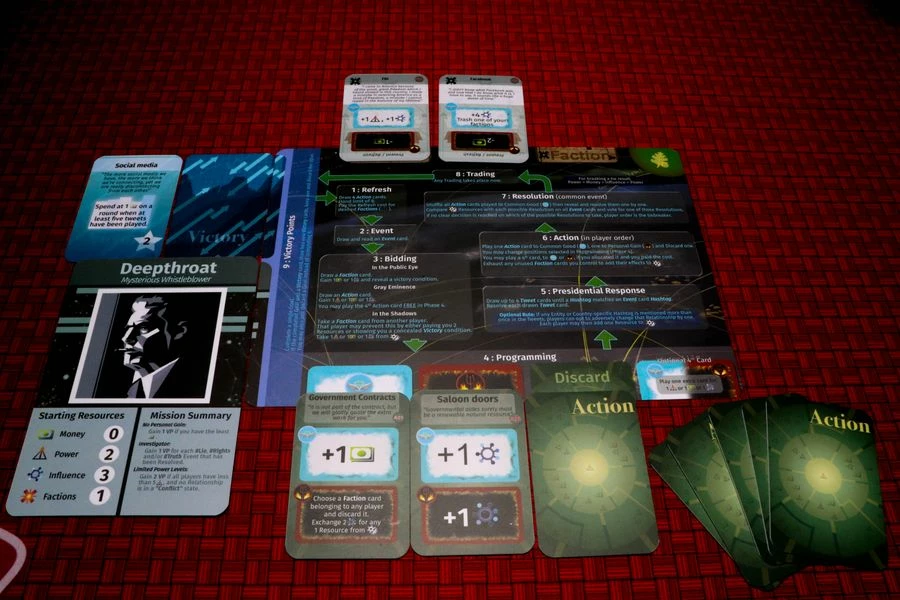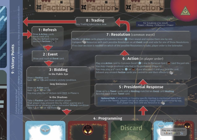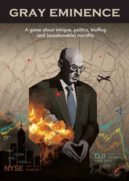 Gray Eminence is a 3-5 player game lasting 60-90 minutes, in which players take the roles of powerful puppet masters in the modern world, each working towards common goals as well as their own, secret, agenda