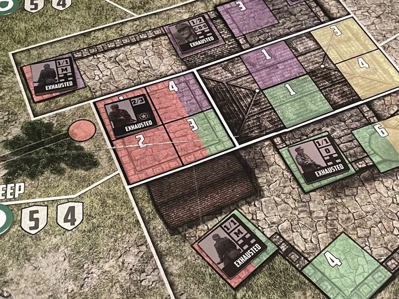 There is also a 2 player variant where one player controls the defenders of Castle Itter, while the other player controls the SS attackers.