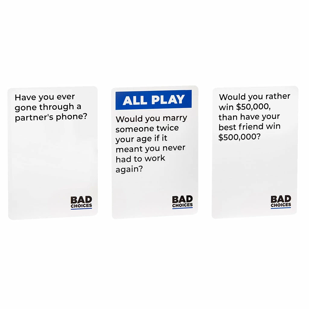 Bad Choices is the next level combination of ‘Never Have I Ever’ and ‘UNO’. This is the party game for finding out hilarious truths, secrets and stories about your friends