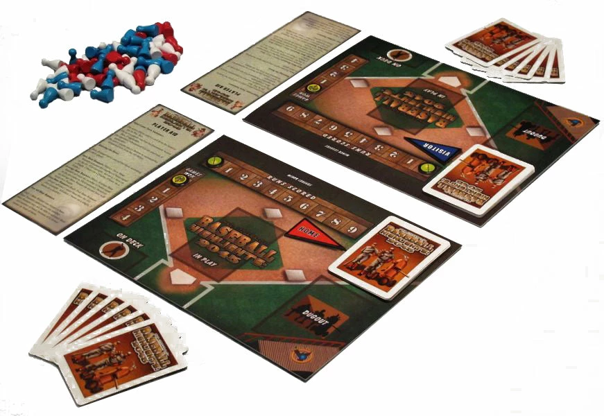 Baseball Highlights: 2045Â is like watching TVÂ highlights of early 21st-century baseball games, with the gameplay being full of theme with no outs or innings and without bogging down in a play-by-play baseball simulation. In this quick and interactive game, two players build their teams as they play, combining both strategy (building your team) and tactics (playing the game) without any of the downtime. During each “mini-game”, each player alternates playing six cards to simulate a full game’s highlights. The mini-game includes defensive and offensive actions, and your single card play may include elements of defensive and/or offensive plays. Do you try to thwart your opponent’s pending hits, put up strong offensive action of your own, or use your better players to do both? Players buy new free agents after each mini-game to improve their roster, and the team who wins the most mini-games in the series is the champ!