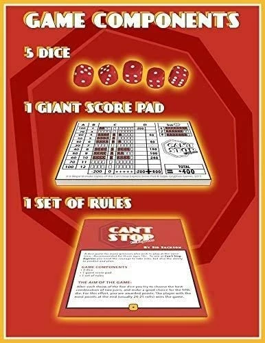 Can’t Stop Express is a re-implementation of Choice/Einstein which, in turn, is a re-implementation of the game Solitaire Dice, first published in 1969 in Sid Sackson’s book A Gamut of Games. The rules to Can’t Stop Express and Choice/Einstein are identical to Solitaire Dice.