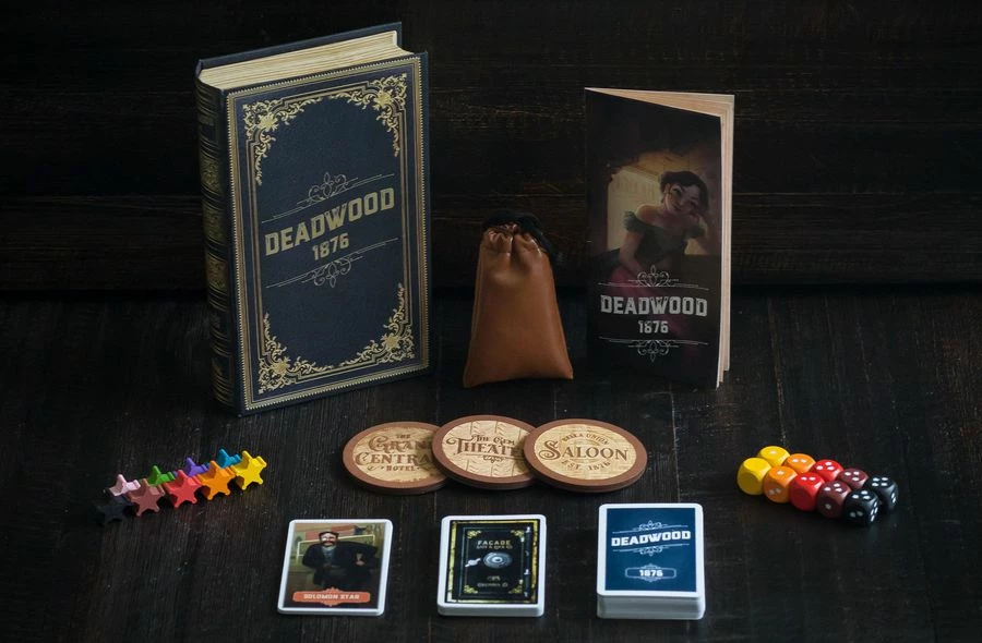 In Deadwood 1876, you use cards from your hand to try to win Safes from other players. Safes contain Badges, Gold, or Showdown Guns. Near the end of the game, players with Badges get extra turns. After the final turn, the team with the most Gold will advance to the Final Showdown. There, teammates will have to fight each other to the death using Showdown Guns. The last person alive is the winner!