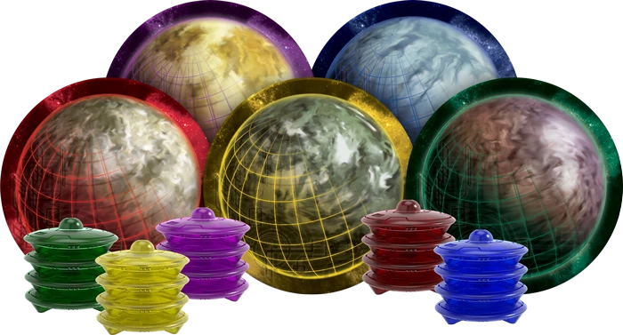The object of the game is to establish colonies in other players’ planetary systems. Players take turns trying to establish colonies. The winner(s) are the first player(s) to have five colonies on any planets outside his or her home system. A player does not need to have colonies in all of the systems, just colonies on five planets outside his or her home system. These colonies may all be in one system or scattered over multiple systems. The players must use force, cunning, and diplomacy to ensure their victory.