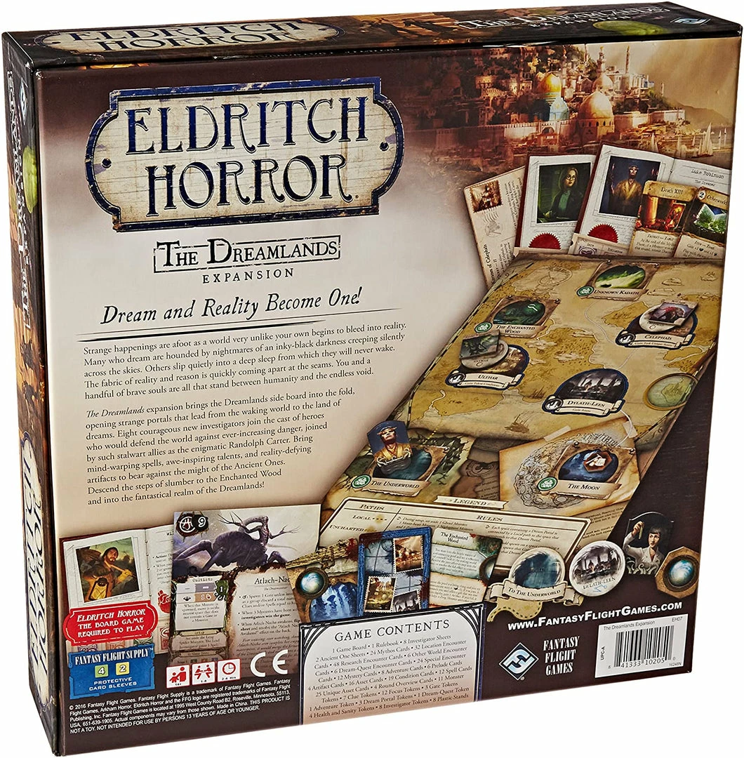 Descend into a world of sleep and splendor with The Dreamlands, the latest expansion for Eldritch Horror. For the first time, you have the chance to walk upon the sweet-smelling grass of the Enchanted Wood, travel into the Underworld, or sail off the edge of the world and voyage to the moon—this expansion introduces an entirely new side board, portraying the mystical, ethereal Dreamlands. As the realm of dreams leaks into our waking world, you’ll find eight new investigators that stand united against two insidious Ancient Ones: Altach-Nacha the Dreamweaver and Hypnos, the Lord of Sleep. With a massive array of new Spells, Conditions, Assets, Adventures, Mythos cards, and encounters for every location, The Dreamlands promises adventures unmatched by anything in the waking world.