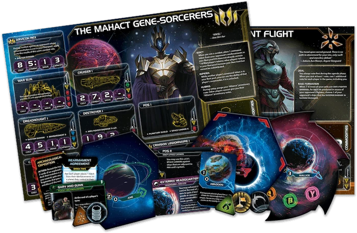 But that’s only a fraction of what you’ll find in this expansion! Adding even more flavor to your chosen species, a wealth of unique leader cards arrive to support every faction in the game, giving you powers to unlock during the game. Lumbering mechs stomp onto the battlefield as powerful new ground forces with unique special abilities for every faction. As you venture into the unknown regions of space, brand-new exploration decks seed new planets and the void of space with new discoveries, including fragments you can combine to create awe-inspiring relics. On top of this, Prophecy of Kings includes new action cards, agenda cards, objectives, technologies, promissory notes, legendary planets, and more.