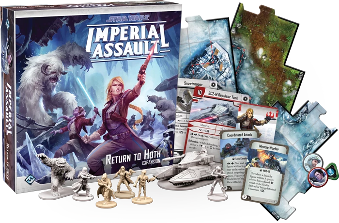 Return to Hoth is a new expansion for Imperial Assault, offering plenty of new content for the campaign and skirmish games. A new full-length campaign allows the Rebel heroes to take up a new story in the aftermath of the Battle of Hoth, while new rules for four-player skirmish games invite you to play a massive, multi-fronted battle. With thirty-seven double-sided terrain tiles depicting the icy wastes of Hoth, sixteen sculpted plastic figures to swell your forces, and a host of cards for both campaigns and skirmishes, Return to Hoth changes your games of Imperial Assault forever!
