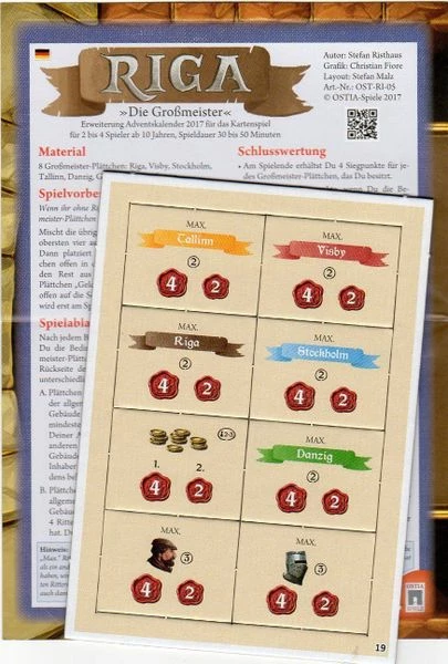 Includes 8 Grand Master Tiles: Riga, Visby, Stockholm, Tallinn, Danzig, Money, Knight, Merchant.