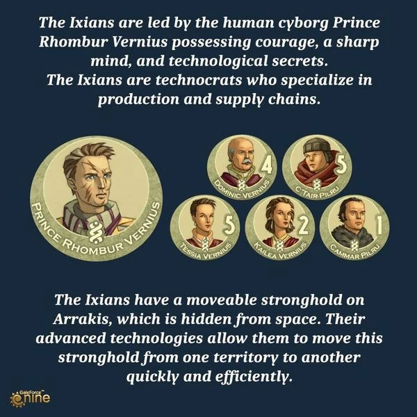 Ixian: The cyborg, Prince Rhombur of House Vernius, leads the Ixians, masters of manufacturing and technologies only they know how to deploy.