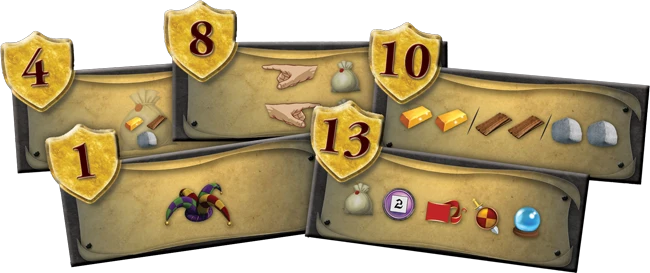 For example, the General originally focuses on battle, recruiting 2 soldiers and secretly looking at the top card of the enemy deck. The new reward tile replaces that effect with the reward to gain 2 gold or 2 wood or 2 stone. The Wizard normally rewards players with 4 gold, but with the new advisor tile placed on his space, he will now reward players with 5 victory points.