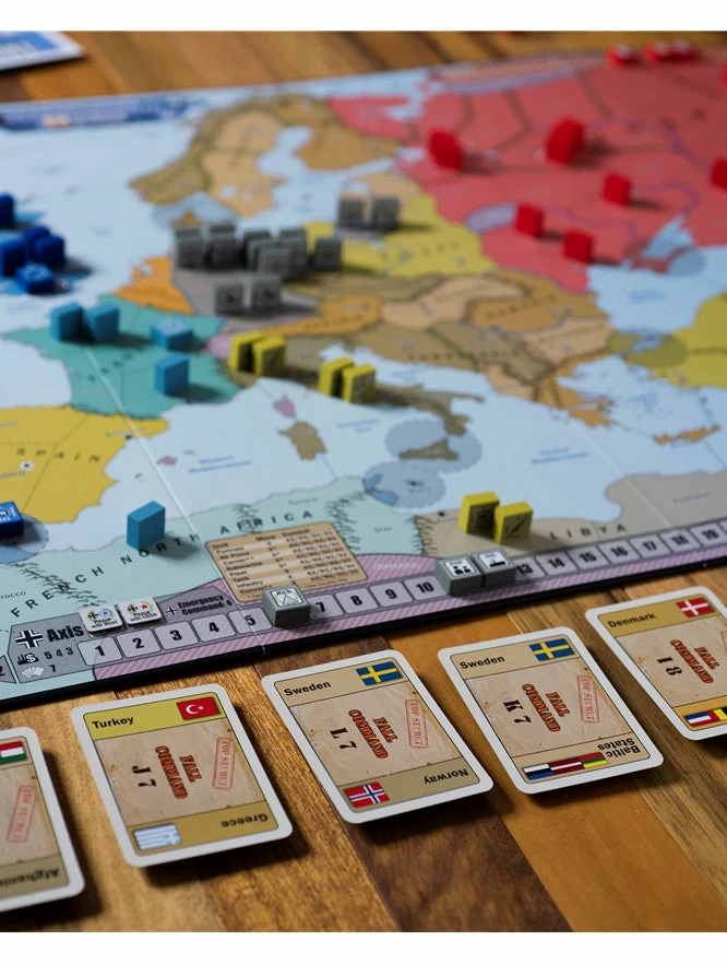 The game starts in 1936, with all 3 Great Powers virtually disarmed: Germany has repudiated the Versailles Peace Treaty, initiating an arms race in Europe. With blocks, the nature of military buildups remain unknown to rivals unless/until military conflict breaks out. The game may end peacefully or there may be war. There are game sanctions for attacking neutral minors or declaring war on an opponent, and rewards for remaining peaceful (you get a Peace Dividend chit of value 0-2 for every year you remain at Peace).