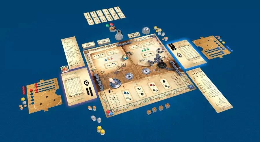 By bidding for specific actions, players will develop their workshop, acquire new fonts, inks and decorations. The unique system of rotating gears allows you to combine bonuses and earn a large number of points.