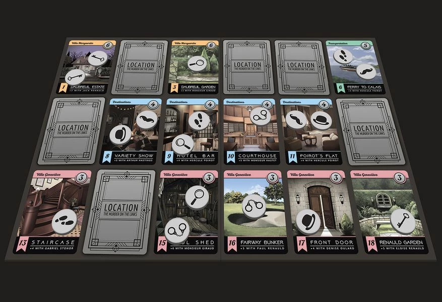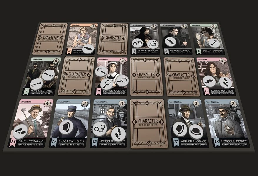 In the INVESTIGATION PHASE, the players will reveal cards from their hands, then interrogate each other in order to eliminate leads. This sequence continues until each player has only one character, one location, and one object left in hand.