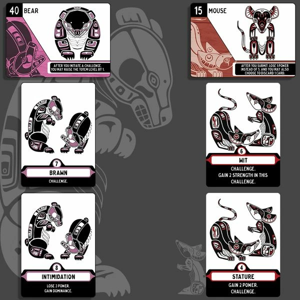 In Totemic, animal spirits vie for their place in the natural world. Using cunning, strength, and aspects specific to their kind, each animal will approach this contest differently. Only the animal that best uses these aspects will win in the end.