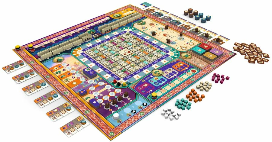 In Merv, players are vying to amass power and wealth in the prosperous heart of the Silk Road. Through careful court intrigue, timely donations to the grand mosque, and favorable trade deals, players attempt to redirect as much of that prosperity as possible into their own pockets.