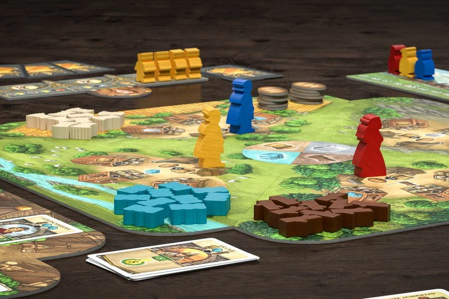 Crown of Emara skillfully combines card actions with worker movement actions, allowing players to plan their turns carefully during their downtime. The two counselors available to every player move in two separate roundabouts, requiring players to optimize every move. Additionally, two scoring tracks lead to a multidimensional playstyle as only the lower score counts towards victory and thus both tracks have to be advanced equally.