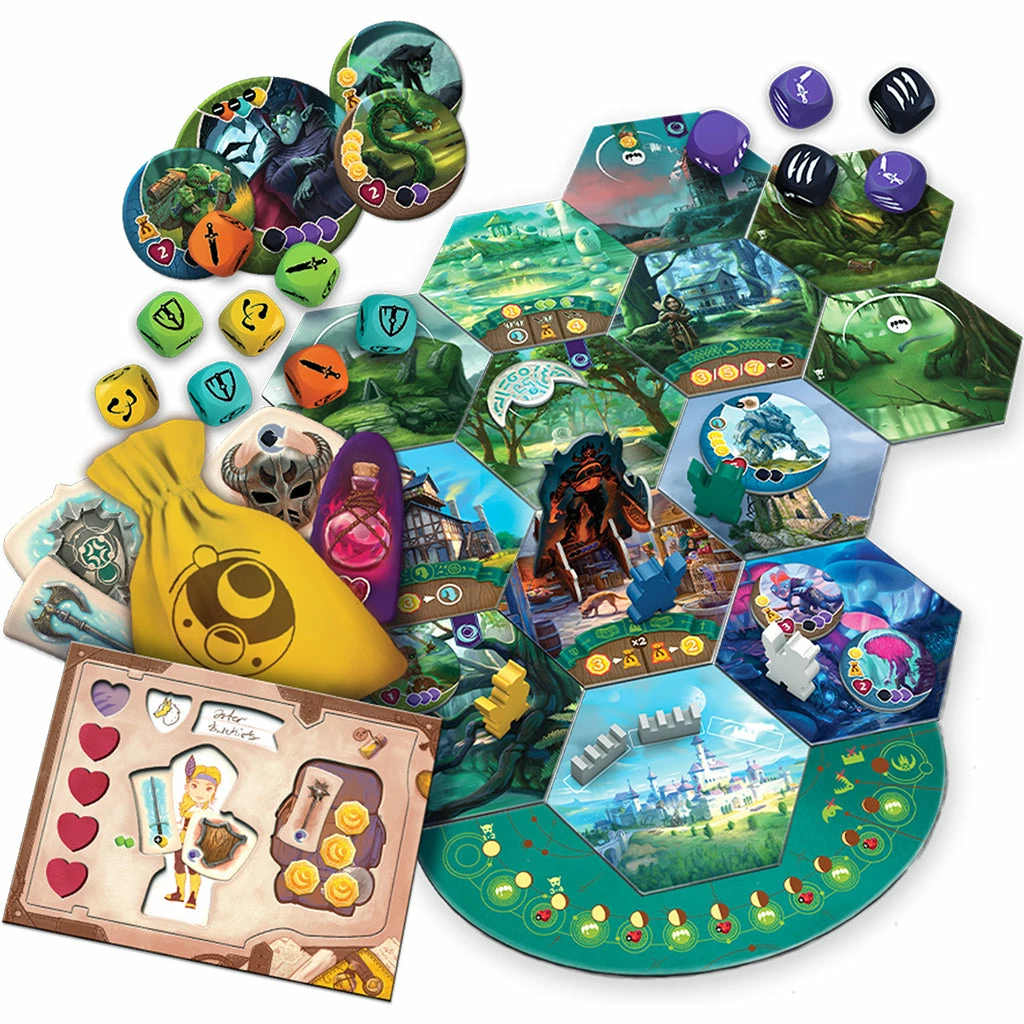 In Chronicles of Avel players will be exploring the world of Avel, moving on a modular board created from hexagonal tiles (different every time). On their journey they will encounter dangerous monsters to fight and roll dice to determine success. Each victory leads to a prize – new weapon, armor, potions and gold – which will make heroes more powerful and unstoppable. But to earn equipment players will have to search through magical bag and choose using only their sense of touch. Victory awaits for those who will cooperate, prepare themselves and defeat the Beast and all his servants.