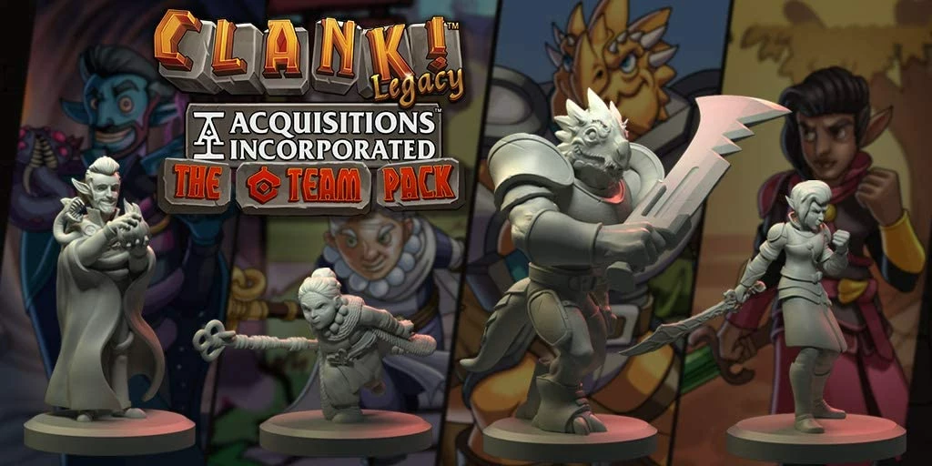 The “C” Team Pack contains four illustrious Acquisitions Incorporated characters that can be used immediately in your existing Clank! game, or even join your Clank! Legacy Acquisitions Incorporated franchise!