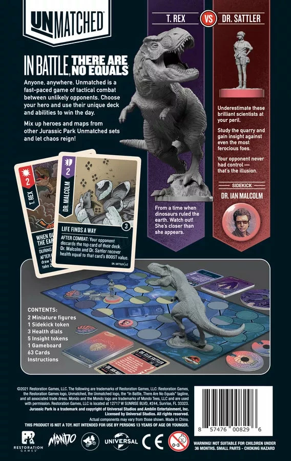 “Dinosaurs eat man… Woman inherits the earth.” The greatest predator the world has ever known is closing in on the tenacious Dr. Sattler. Who has the slightest idea what to expect? In Unmatched: Jurassic Park – Dr. Sattler vs. T. Rex, the massive T rex unleashes fearsome attacks and seems unstoppable while Dr. Sattler makes full use of her surroundings and the aid of Dr. Ian Malcolm and his chaos theory. Who will become extinct first?