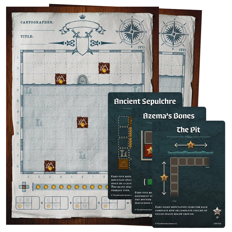 This map pack can be played with either Cartographers: A Roll Player Tale or Cartographers Heroes.